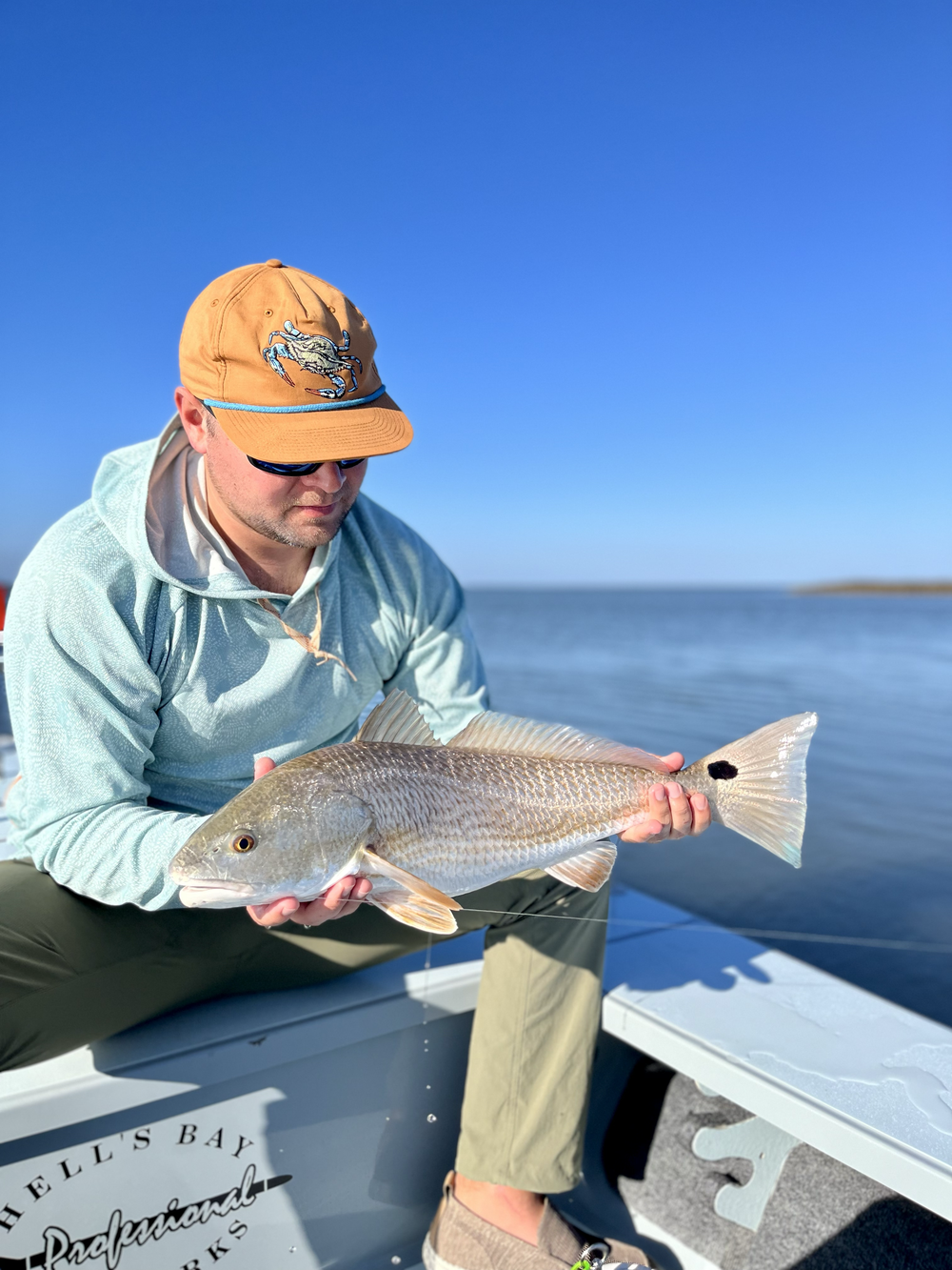 While you’ll be targeting redfish you may have opportunities to hook drum, trout or sheepshead as well. All fish will be kept as wet as possible with a catch & release approach.